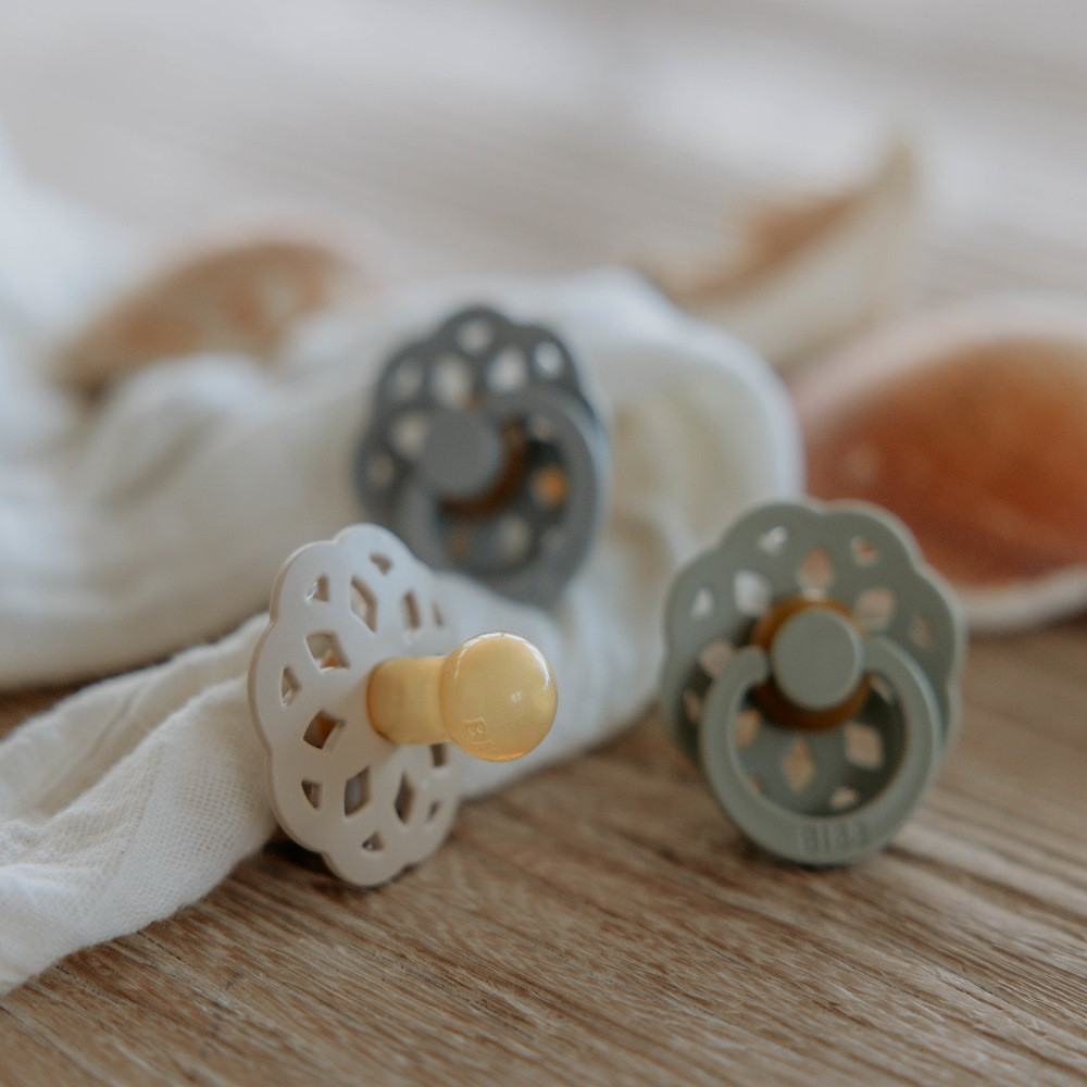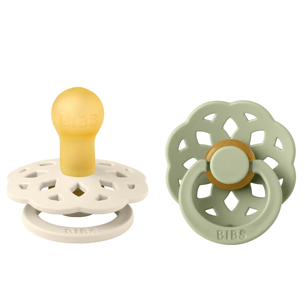 BIBS játszócumi - Boheme natúr kaucsuk 0-6 hó krémfehér és zsálya 2 db