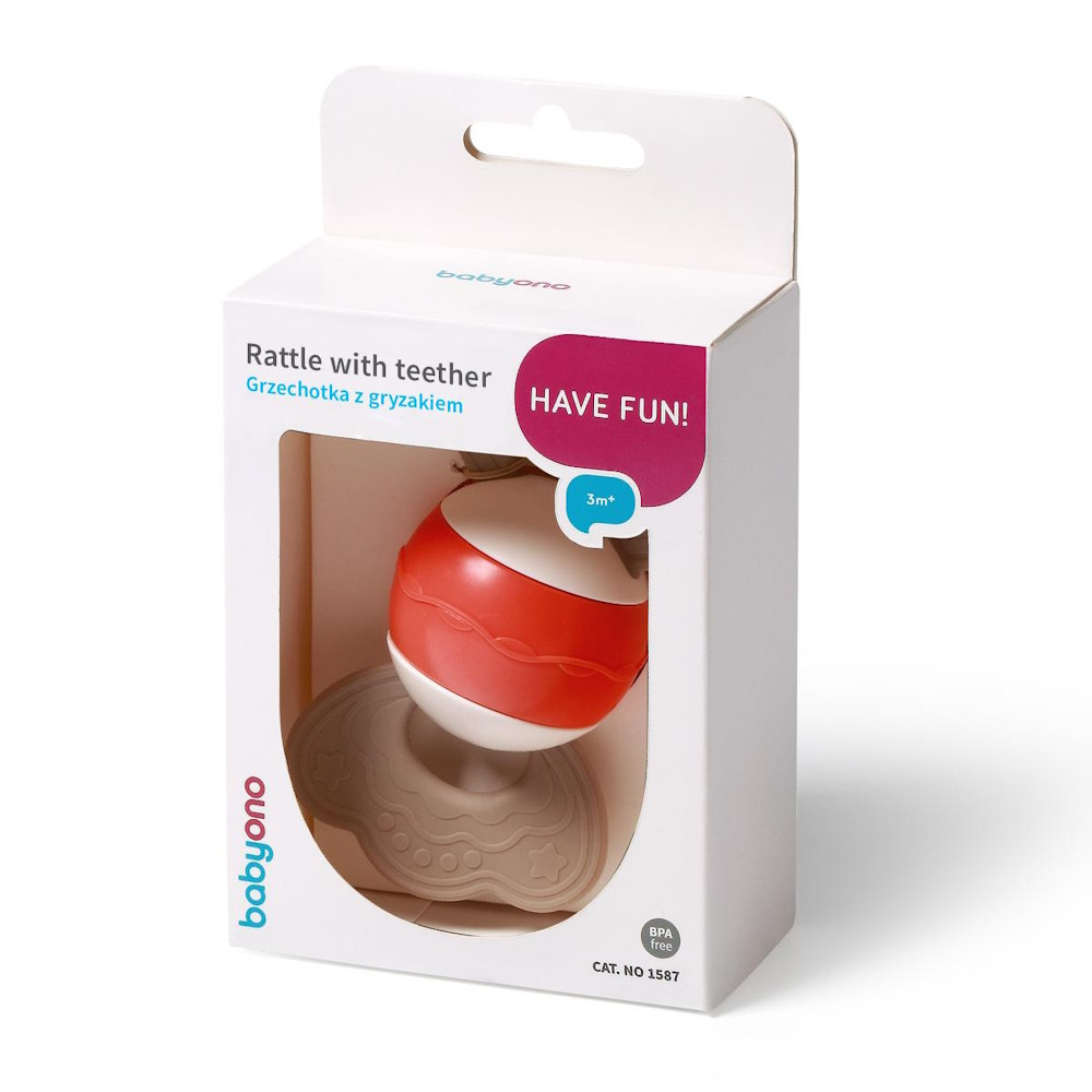 A BabyOno csörgőt és rágókát ötvöző játéka tökéletes első játék babád számára. Teljes egészében biztonságos és kellemes tapintású anyagokból készült.