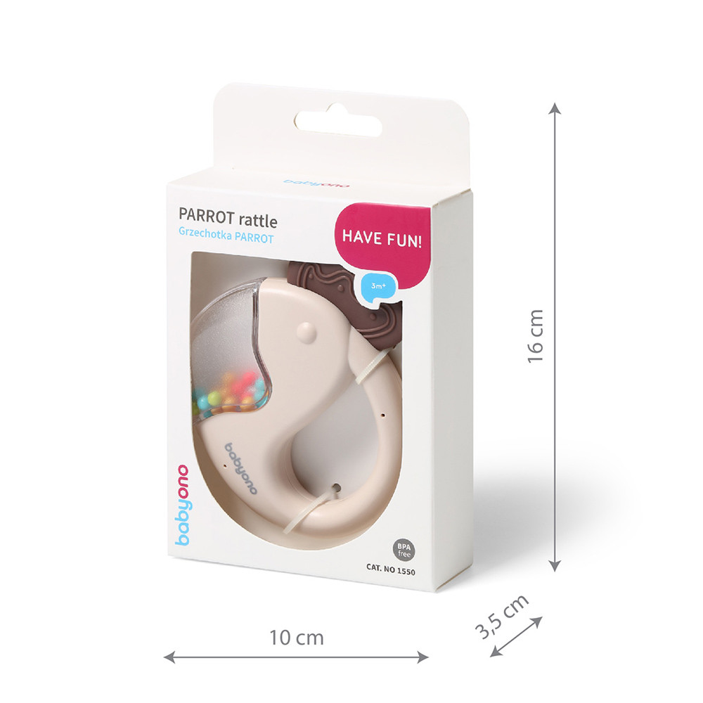 Csörgőnk tökéletes a baba érzékszervei fejlesztésére. Biztonságos anyagokból és ergonomikus formában készült, amely tökéletesen illeszkedik a kis kezekhez. A csörgő által kibocsátott hangok serkentik a hallást, míg a kontrasztos színek elősegítik a baba látásának fejlesztését az élet korai hónapjaitól kezdve.