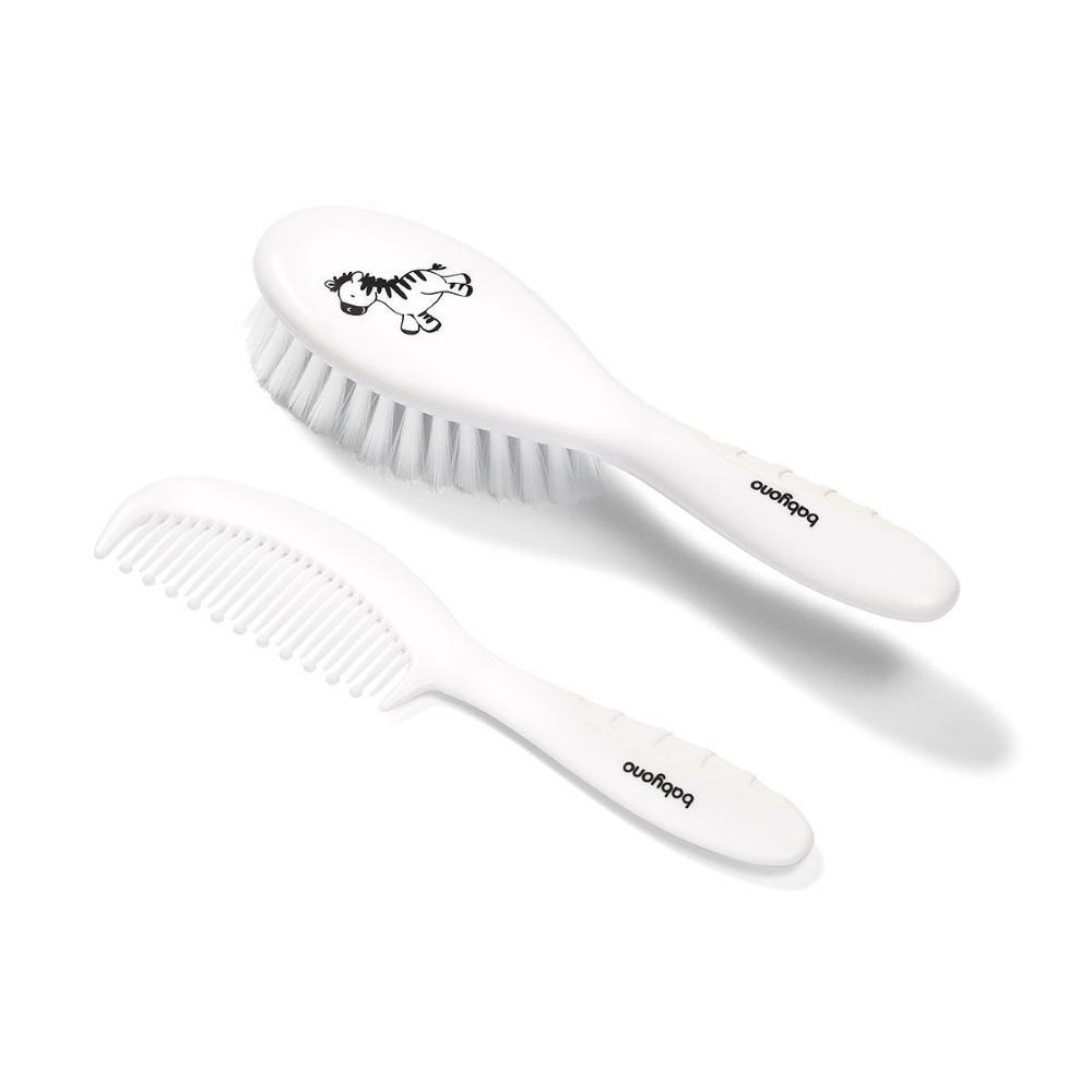 A hajkefe és a fésű nyele is csúszásgátló gumival van bevonva, hogy a kefélést és a fésülést könnyebbé és kényelmesebbé tegye. Tökéletesen masszírozza a baba bőrét, és antisztatikus tulajdonságainak köszönhetően nem vesz fel sztatikus elektromosságot. A készletben található fésű lekerekített hegyű, így a baba fejbőrét nem irritálja.