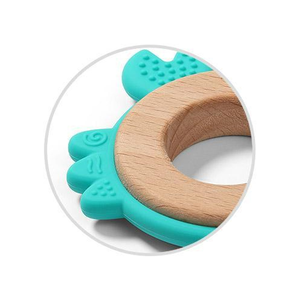 A fa és szilikon rágóka nemcsak alapfeladatát látja el, azaz megkönnyebbülést ad a fogzás során, hanem változatos szenzoros stimulációt is biztosít a biztonságos szilikon és bükkfa kombinációjának köszönhetően. A játék vonzó motívumú. A rágóka felületét alkotó számos elem további előnyökkel jár a baba számára. A kitüremkedés garantálja az érzékszervi stimulációt, segít a babának megragadni a terméket, és lehetővé teszi a fogászati gél felvitelét az ínyre.