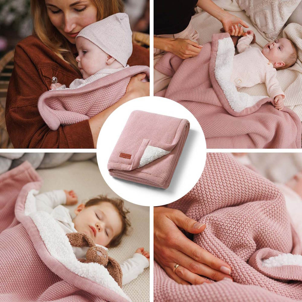 BabyOno babatakaró pamut/sherpa kötött 75x100cm rózsaszín 1659/01