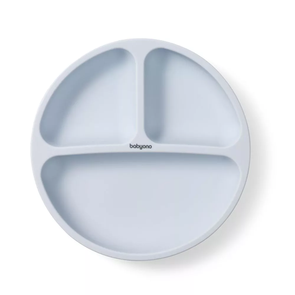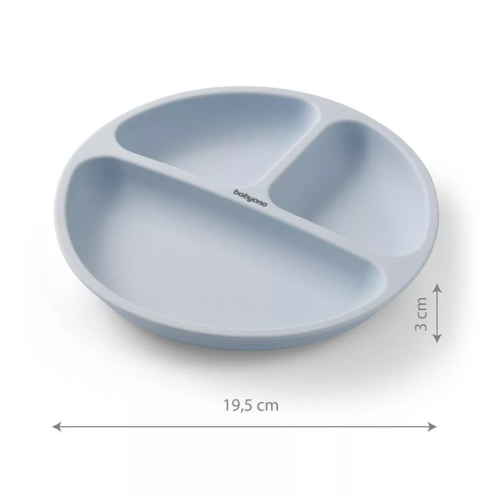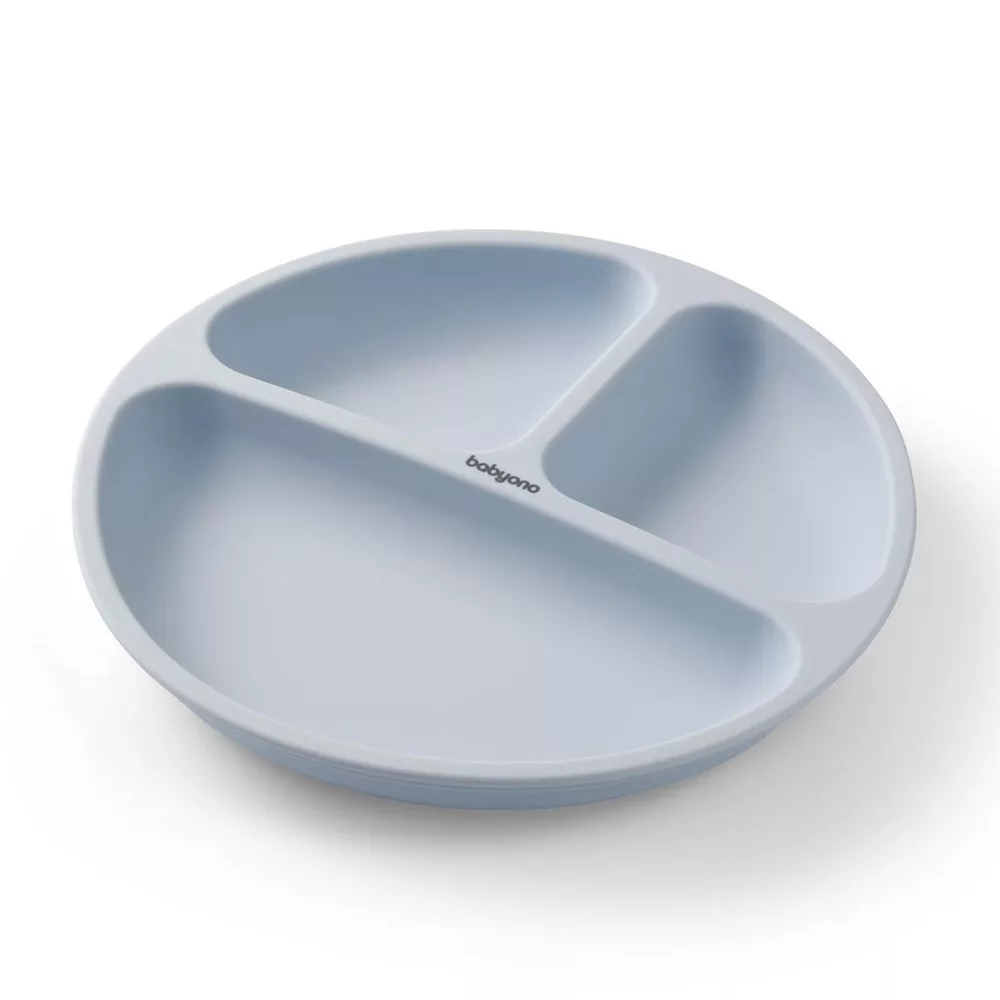 BabyOno tányér szilikon tapadó aljú háromrekeszes kék 1482/01