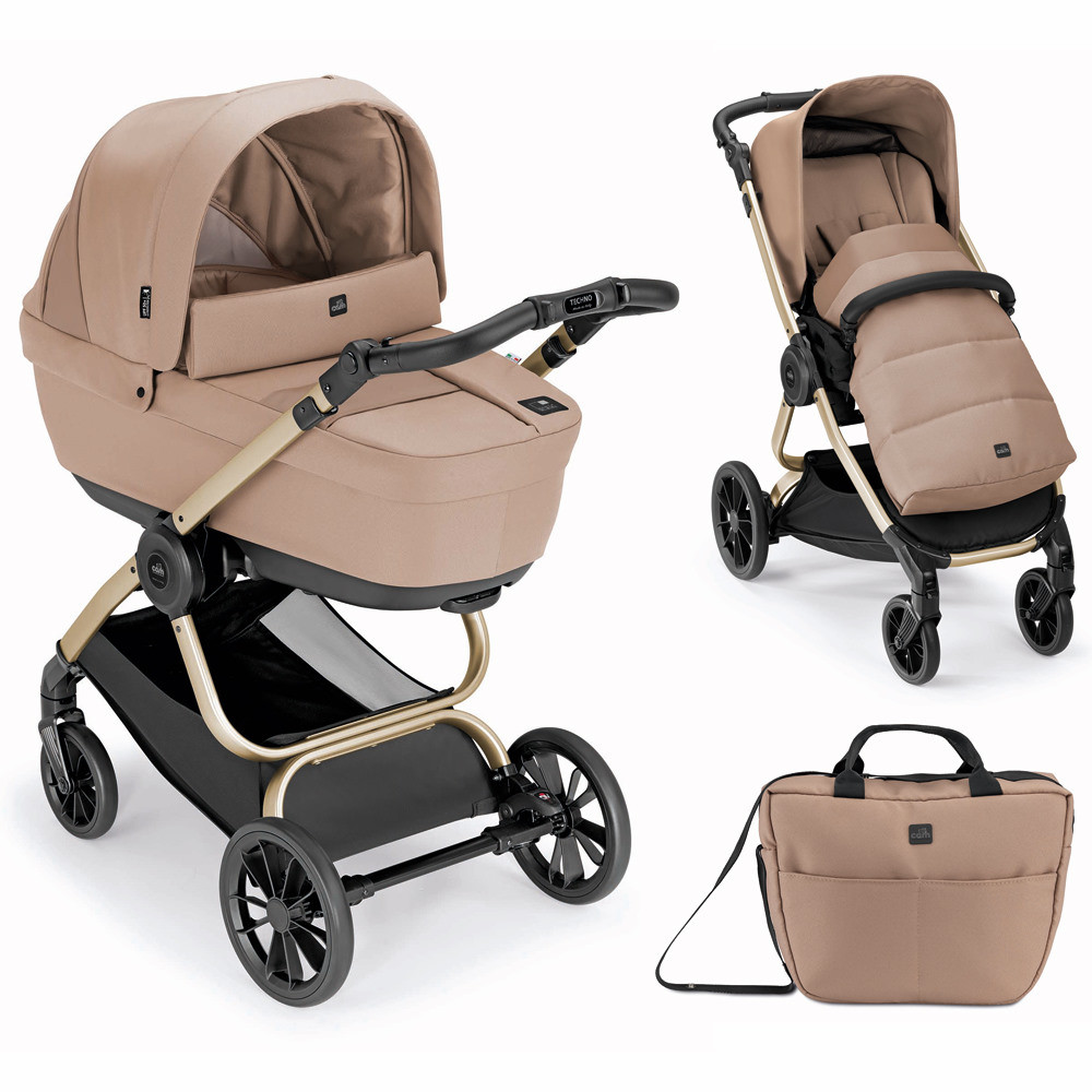 Tartalma: Techno váz, mózeskosár, babakocsi ülés, pelenkázótáska.