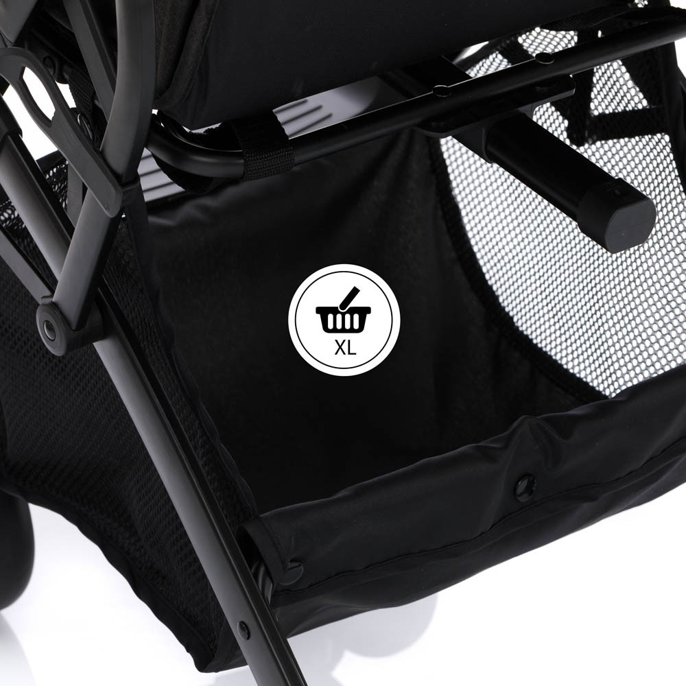 Rugós és 360°-ban elforgatható első kerekeivel, valamint a nagyméretű hátsó kerekeivel minden felületet gond nélkül ural. A 2 pozícióba állítható lábtámasz és a külön állítható háttámla a kicsi igényeihez igazodik. Ha gyermeked séta közben szeretne szunyókálni, a háttámlát fekvő pozícióba, a lábtartót pedig a legfelső helyzetbe állíthatod. Ez kényelmes fekvőfelületet biztosít a gyerkőc számára. A kihúzható tető árnyékot és megfelelő védelmet nyújt a nap és a szél ellen. A párnázott 5 pontos biztonsági övnek és a kivehető első kapaszkodónak köszönhetően a gyermek mindig biztonságban lehet útközben. A séta közbeni megállások során a könnyen működtethető rögzítőfék gondoskodik arról, hogy a babakocsi megbízhatóan megálljon. Ha a babakocsi nincs használatban, egy kézzel gyorsan és egyszerűen összecsukható.