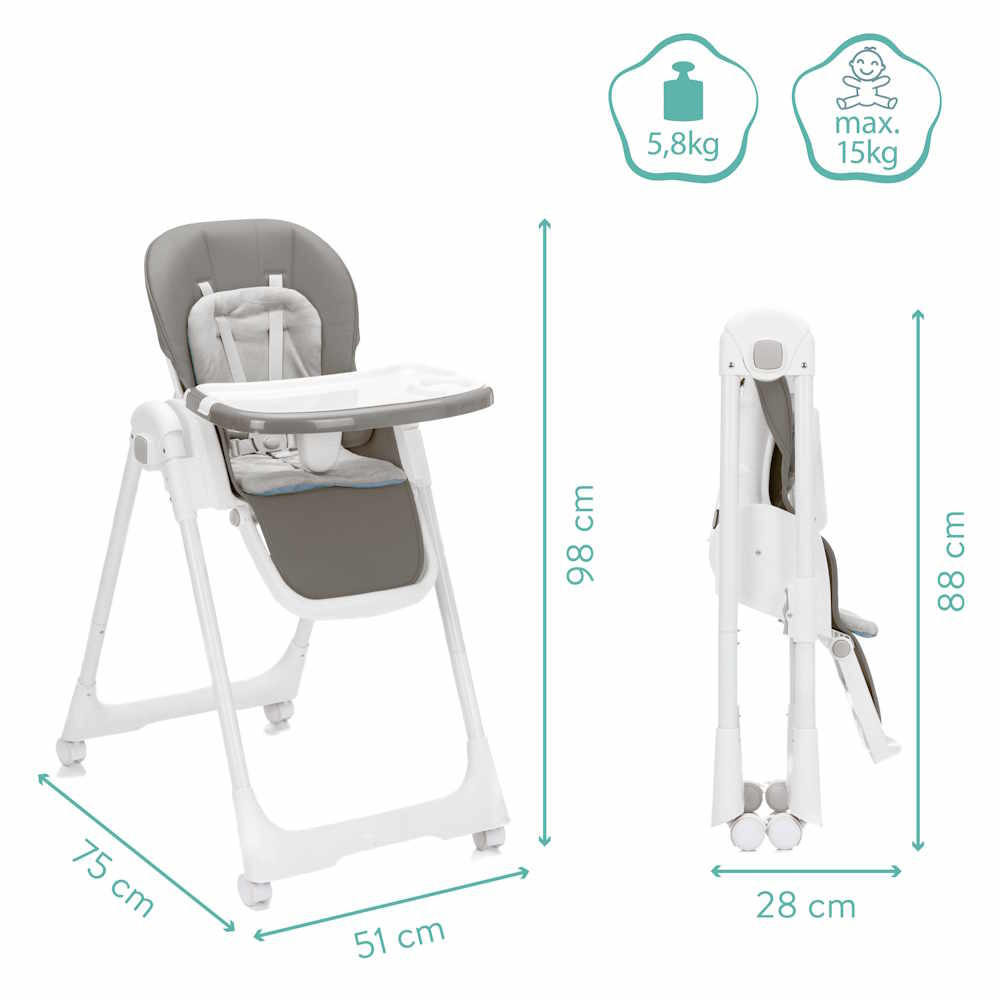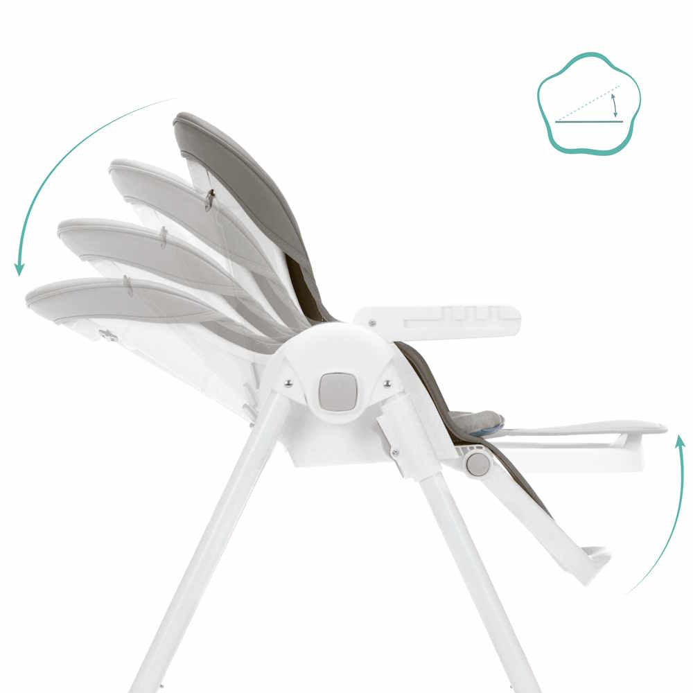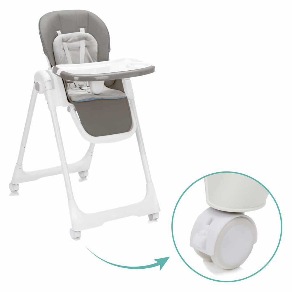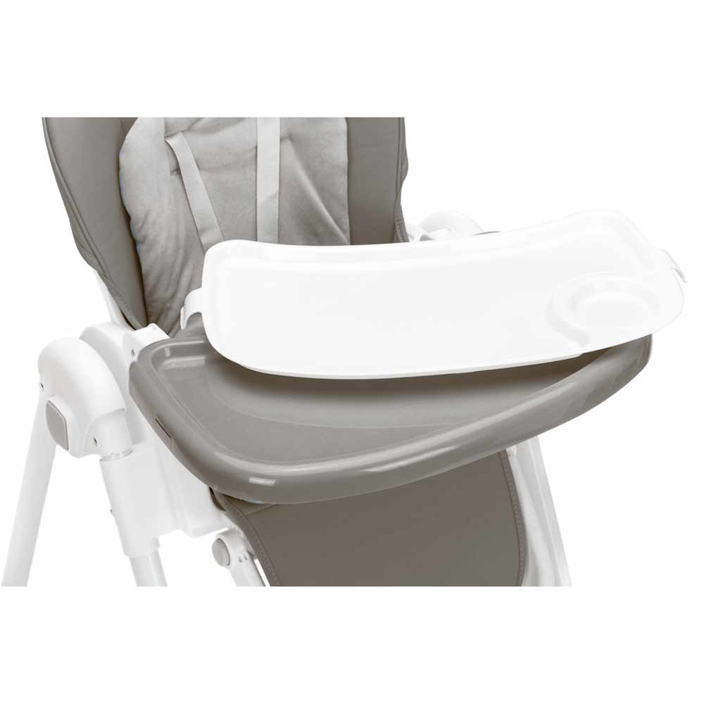 Az etetőszéket kiváló minőségű PU bőr borítás és extra puha ülőpárna jellemzi, amely még a hosszabb étkezések során is kényelmet biztosít. Az étkezőtálca nemcsak praktikus, hanem könnyen levehető és tisztítható is, így az étkezések utáni gyors rendrakás sem okoz gondot.