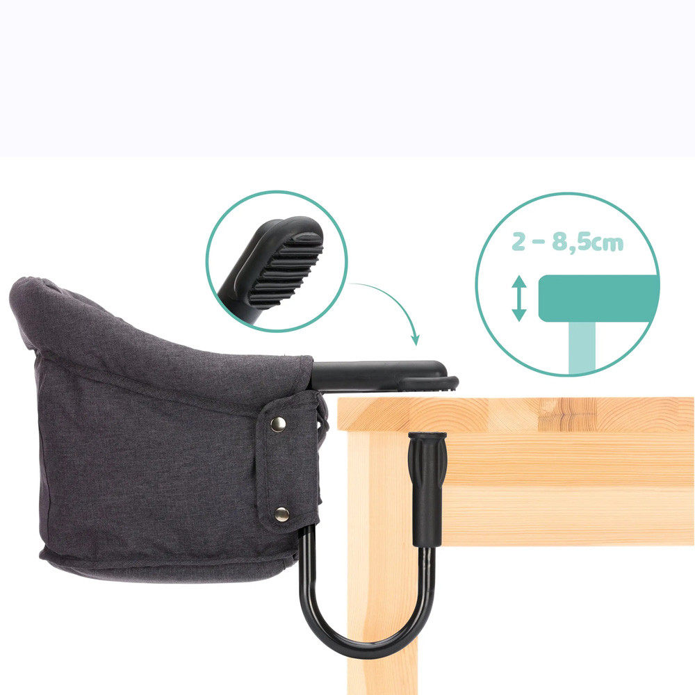 A Fillikid asztali etetőszéke nagyon stabil, és összehajtható, csavaros rögzítéssel könnyen felszerelhető az asztallapra. A háttámlán található kiegészítő zseb nedves törlőkendőknek és egyebeknek ad helyet. Ideális otthon, vagy egyszerűen és gyorsan összehajtható, és magaddal viheted, amikor rokonokhoz vagy étterembe mentek.