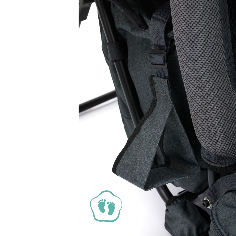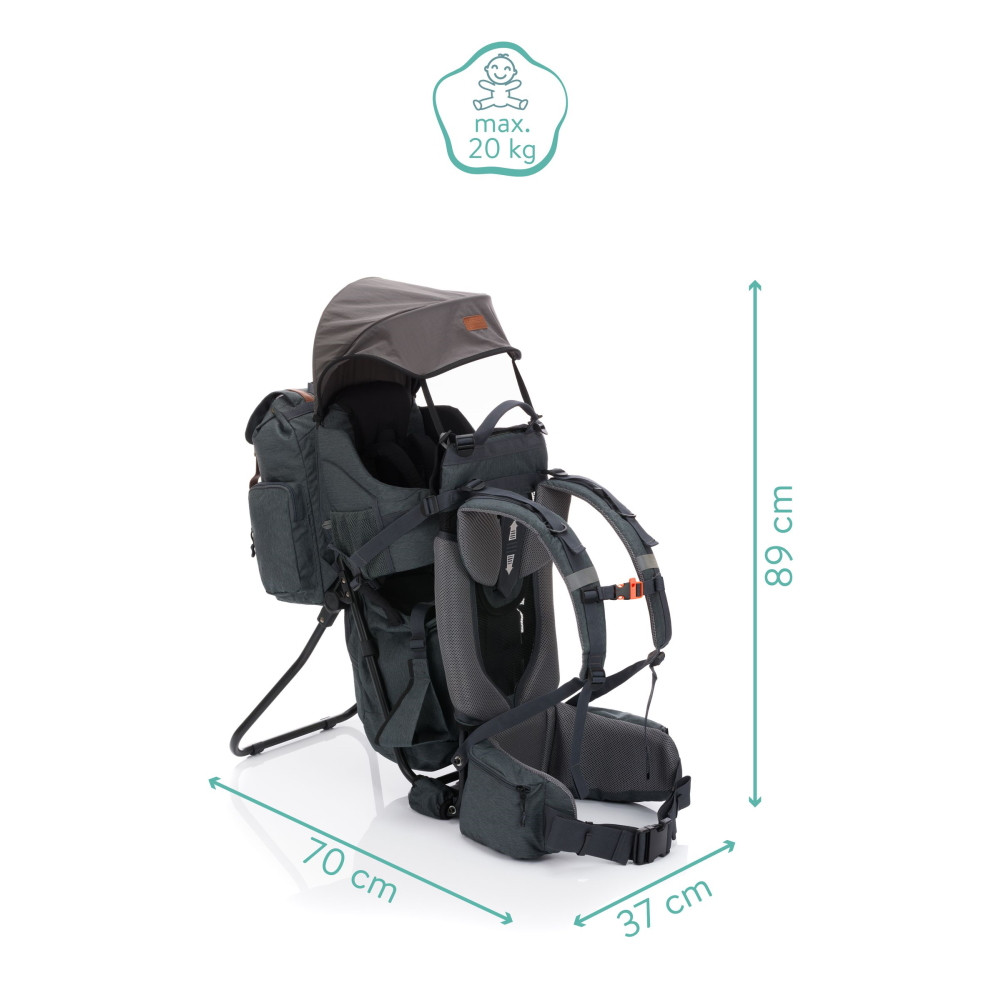 A hordozó legfeljebb 20 kg súlyig terhelhető, és többek között elegendő tárolórekeszt kínál, hogy minden kéznél legyen egy stresszmentes kiránduláshoz.