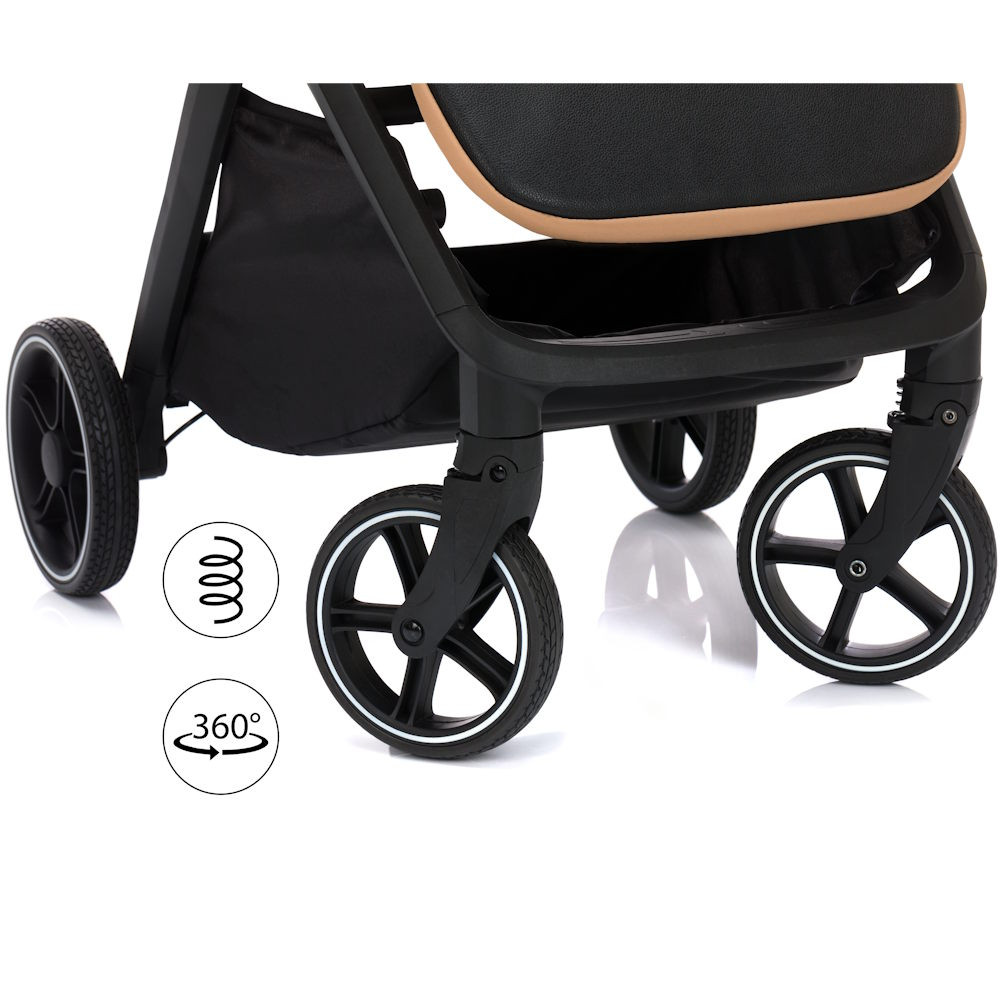 A 16,5 cm átmérőjű első és a 20,3 cm átmérőjű hátsó kerekeknek köszönhetően bármilyen felületen könnyedén vezethető, legyen szó sima városi utcákról vagy egyenetlen utakon. Robusztus felépítése ellenére a babakocsi összecsukható mérete kicsi, és az egykezes összecsukórendszernek köszönhetően könnyen elrakható.
