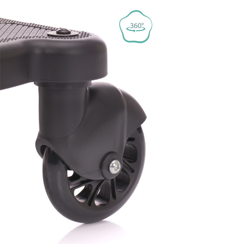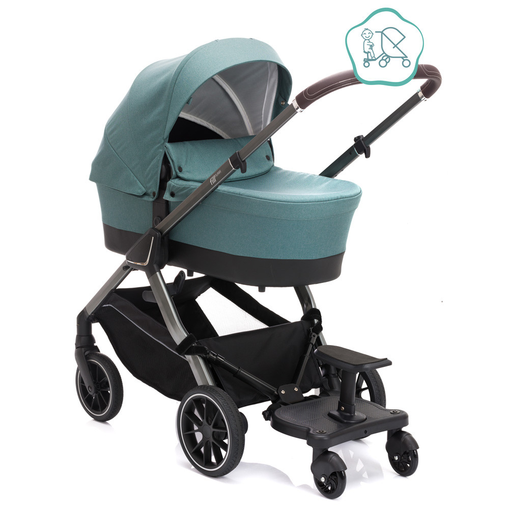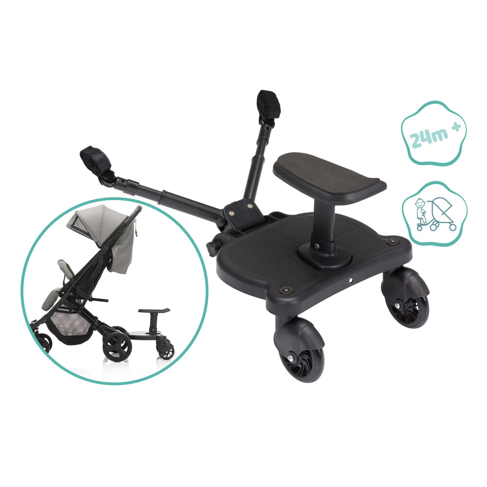 Az alacsony, 1,85 kilós önsúlynak és a nagyon simán futó kerekeknek köszönhetően nem okoz gondot a tolása a szülőknek. Könnyen, szerszám nélkül rögzíthető keresztirányú és függőleges támasztékokra, és szinte minden babakocsira és babakocsira illeszkedik. A Basic testvérfellépő a csatlakozó rendszernek köszönhetően 50cm szélességig állítható. Ezzel a praktikus társsal semmi sem áll útjában egy hosszú sétának gyerekekkel a természetben!