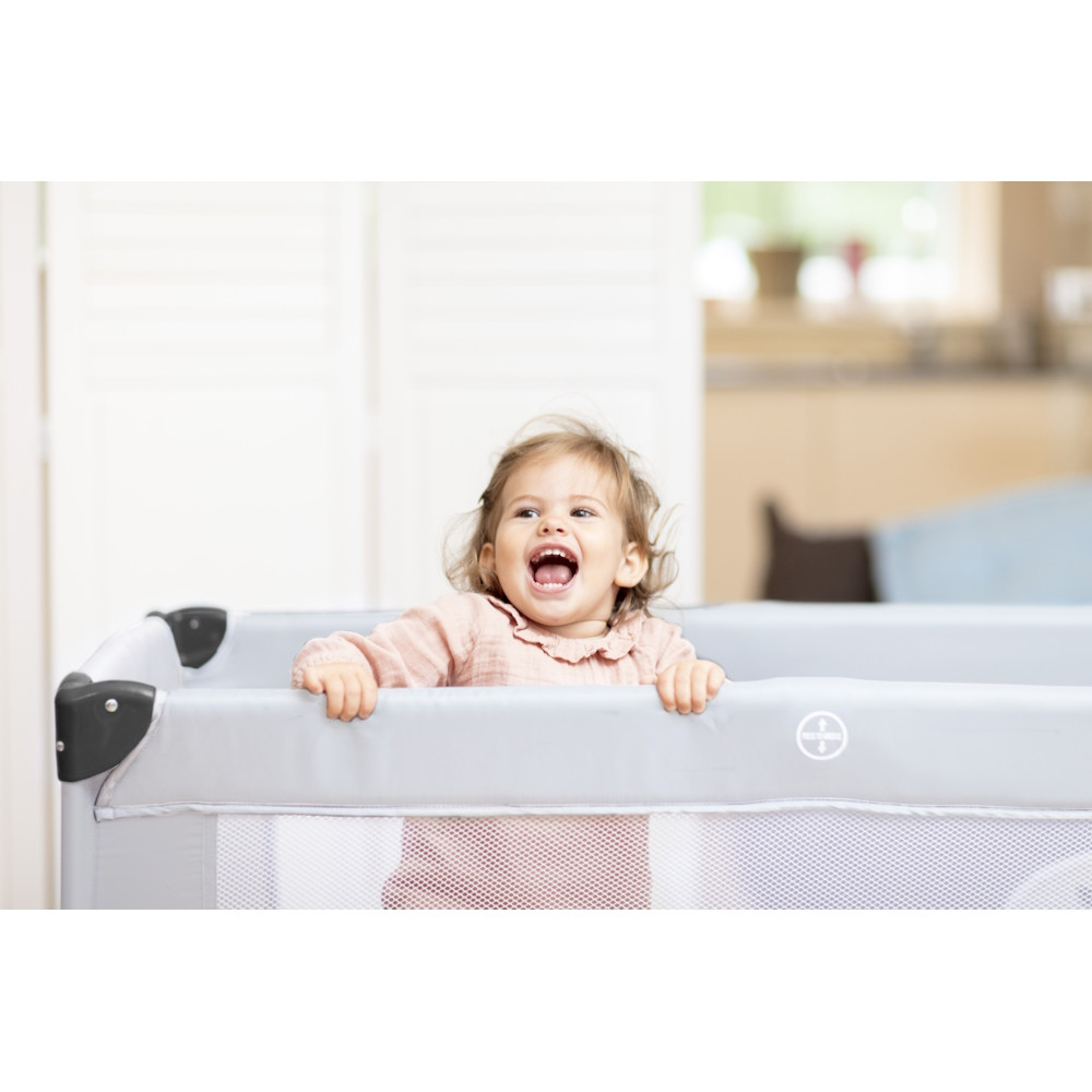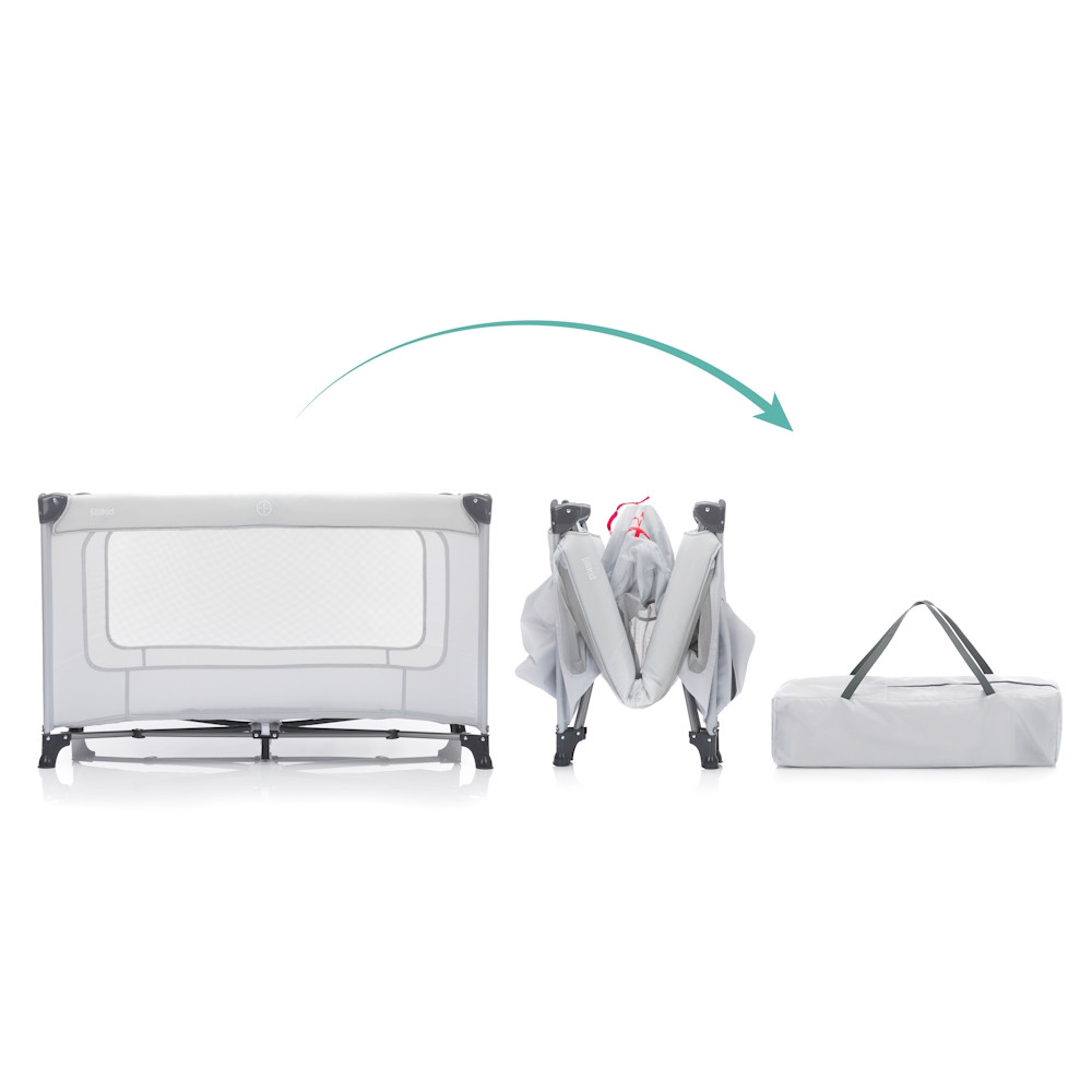 Könnyen és kompaktan összecsukható, a kiságyat a szállítótáskában magaddal viheted utazásaitokra.