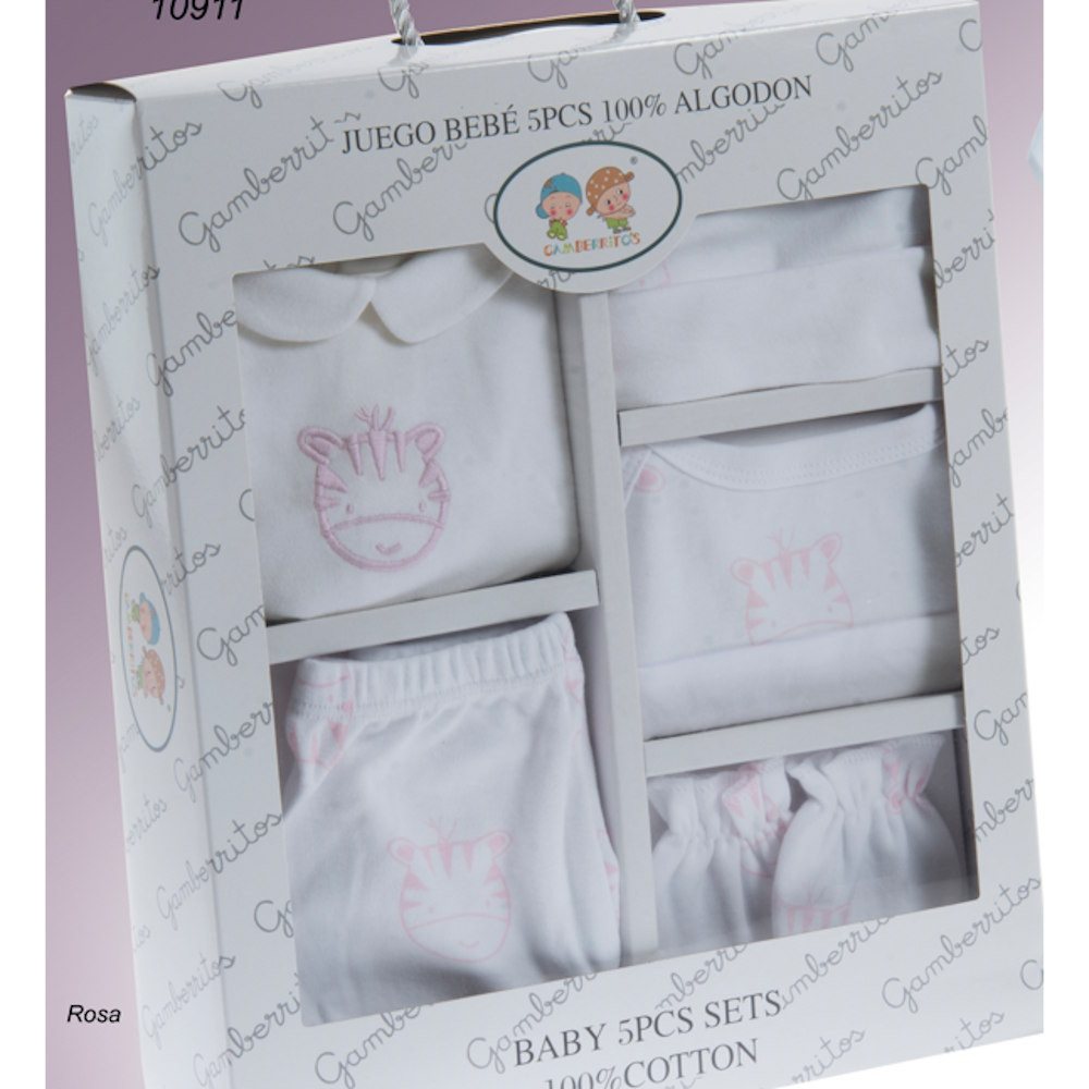 Gamberritos kiegészítő szett újszülötteknek 5 részes (sapka, kesztyű, nadrág, póló, előke) rózsaszín 10911
