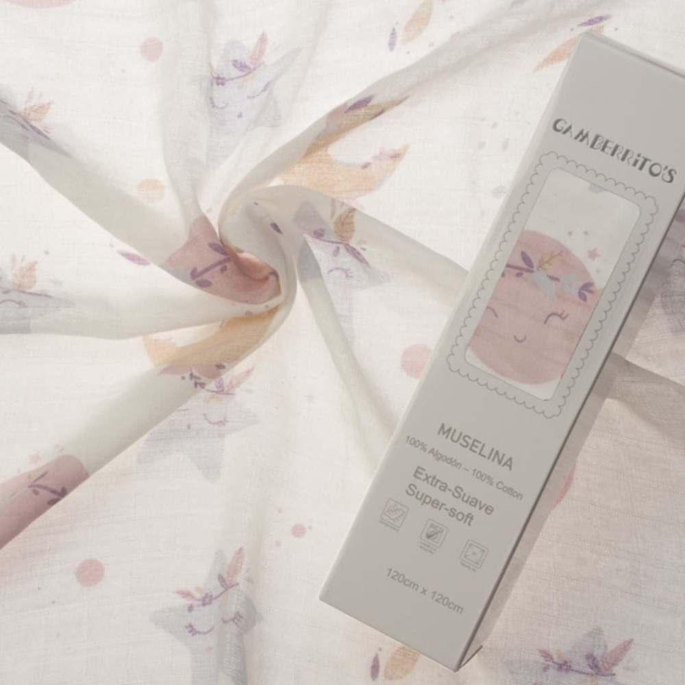 Nagy méretű, fehér muszlin anyag kisbabáknak tervezve.