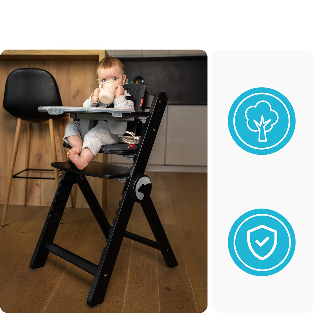 Minimalista, letisztult vonalak és természetes anyagok teszik ezt az etetőszéket stílusos kiegészítőjévé bármilyen belső térnek. Most natúr fa, szürke és fekete színben kapható – tökéletes minden helyiségbe.