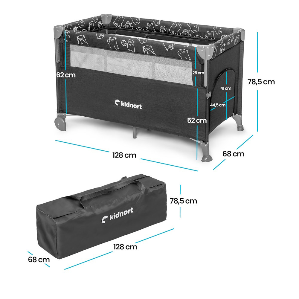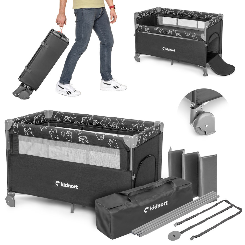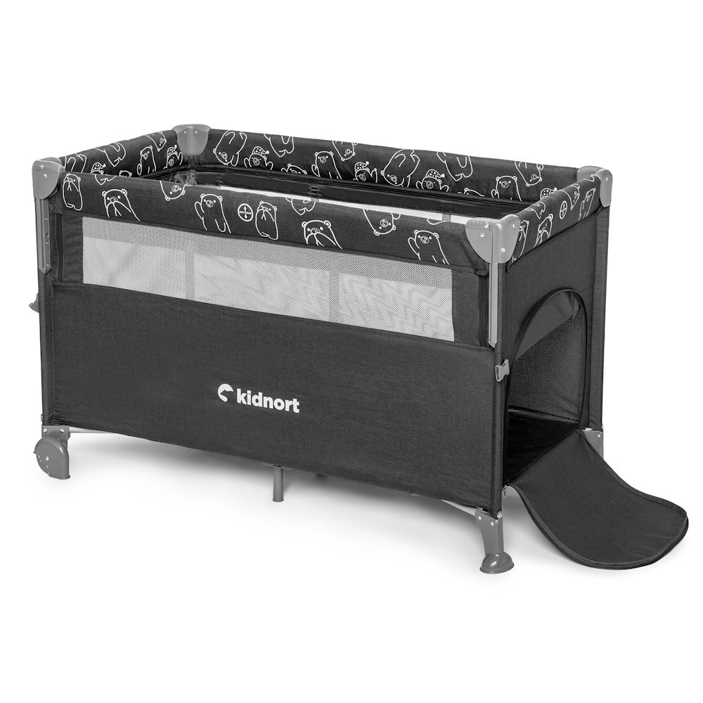 A cipzáras oldalsó panel megkönnyíti a gyermek elérését anélkül, hogy felülről kellene emelni. Lehetővé teszi a kisgyermekek számára, hogy önállóan be- és kimászhassanak. Az oldalsó tárolózseb kéznél tartja a pelenkákat, törlőkendőket vagy játékokat a nagyobb kényelem érdekében.