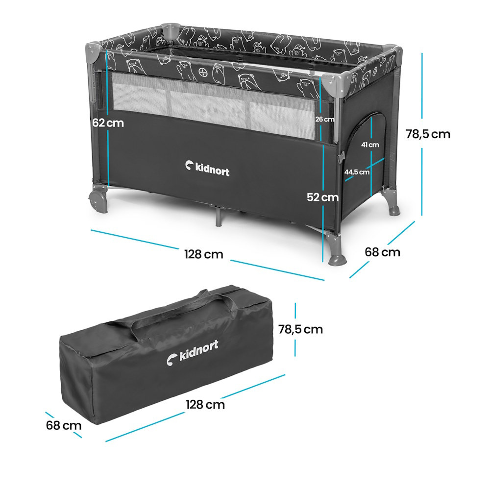 A nagy hálós szellőzőpanelek állandó légáramlást biztosítanak, hozzájárulva a kényelmes és pihentető alváshoz. A szülők könnyen szemmel tarthatják gyermeküket anélkül, hogy föléhajolnának.