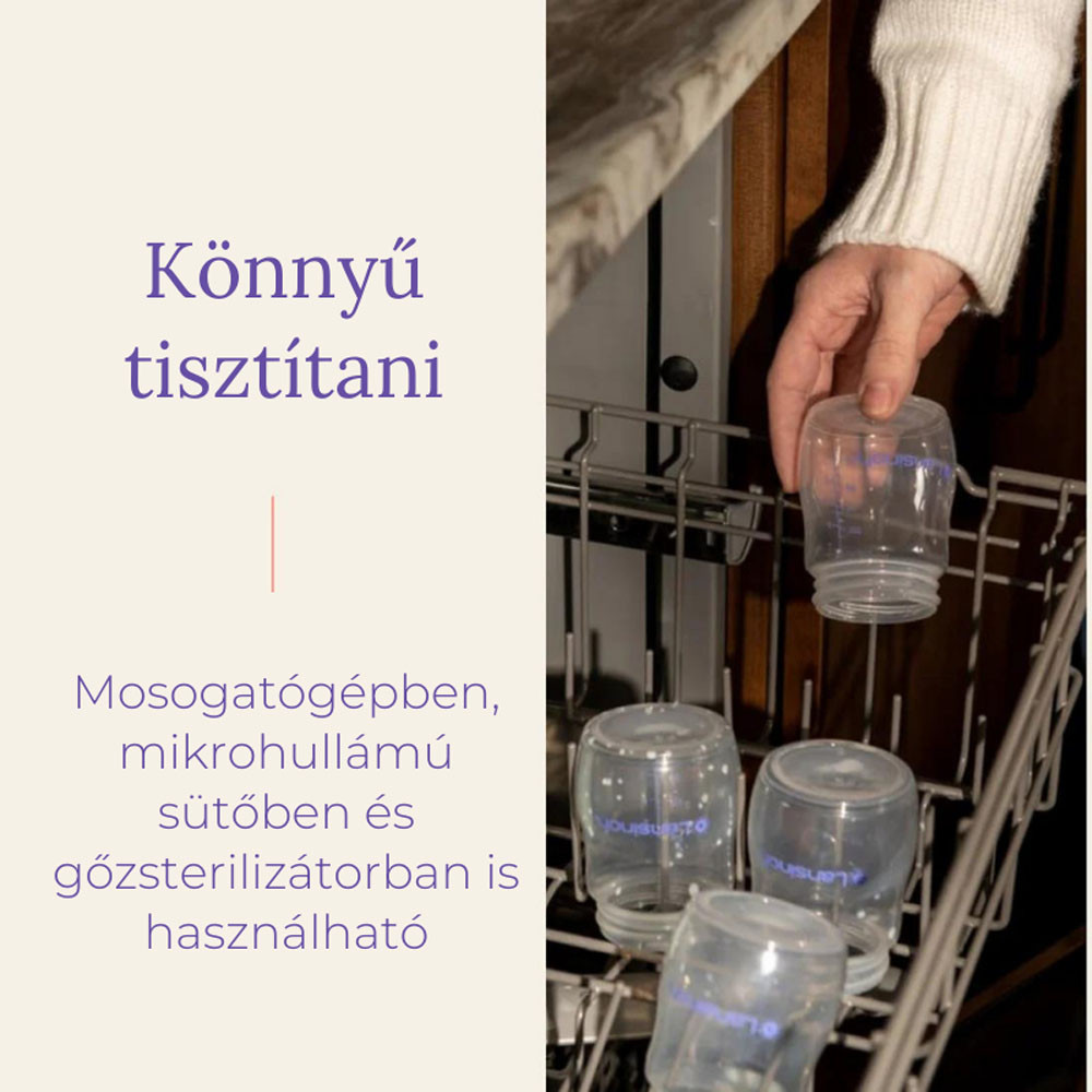 Ideális az anyatej biztonságos tárolásához. Ergonomikus és könnyen megtölthető a széles nyak kialakítás miatt. Minden Lansinoh mellszívóhoz csatlakoztatható, közvetlen bele tudod fejni a tejet. Cumisüveggé is alakítható a Lansinoh etetőcumival. Mosogatógépben tisztítható, mélyhűtőbe tehető.