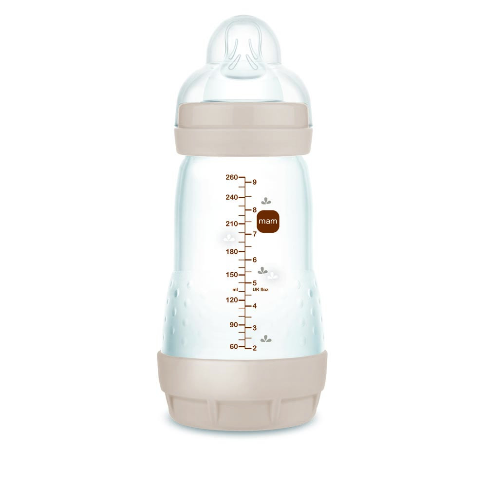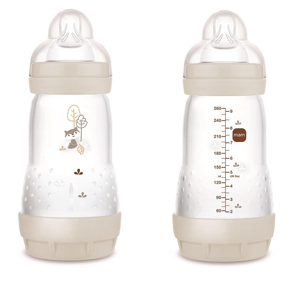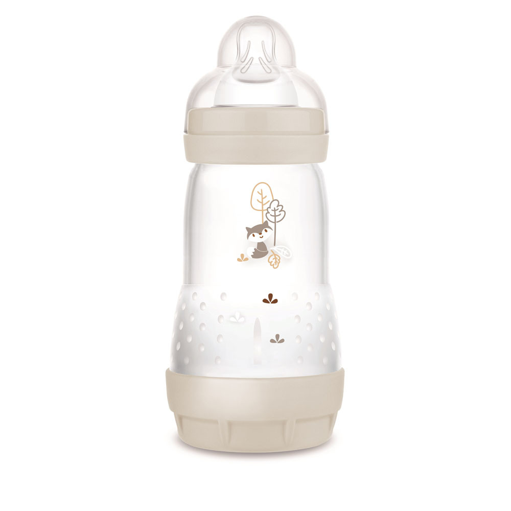 A természet ihlette színekkel és mintákkal ellátott 260 ml-es MAM Anti-Colic Matt Forest az ideális cumisüveg kisbabáknak: a babák saját tempójukban, teljesen ellazulva ihatnak.