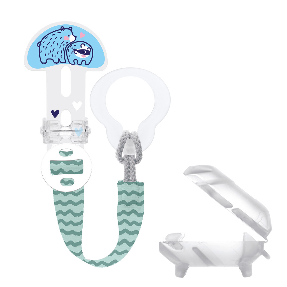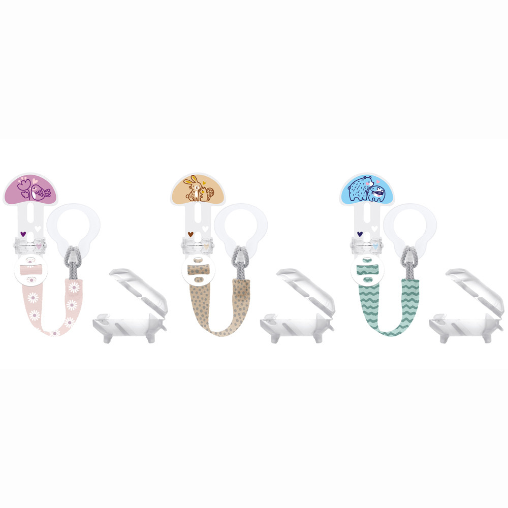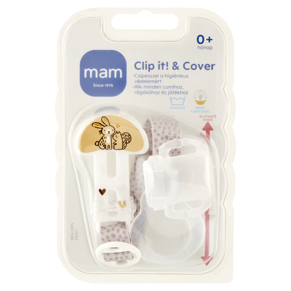 A MAM Clip It segítségével a mozgékony kisbabák cumija is mindig tiszta marad és kéznél van, a szívókavédő pedig a cumifejet is védi.