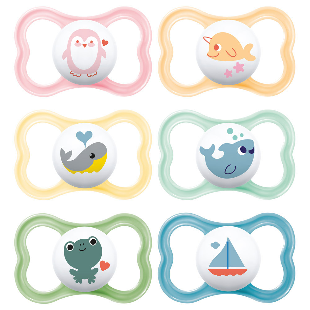 A MAM Air cumi extra nagyméretű levegőnyílásai több levegőt engednek a baba bőréhez. Ezért különösen bőrbarát.