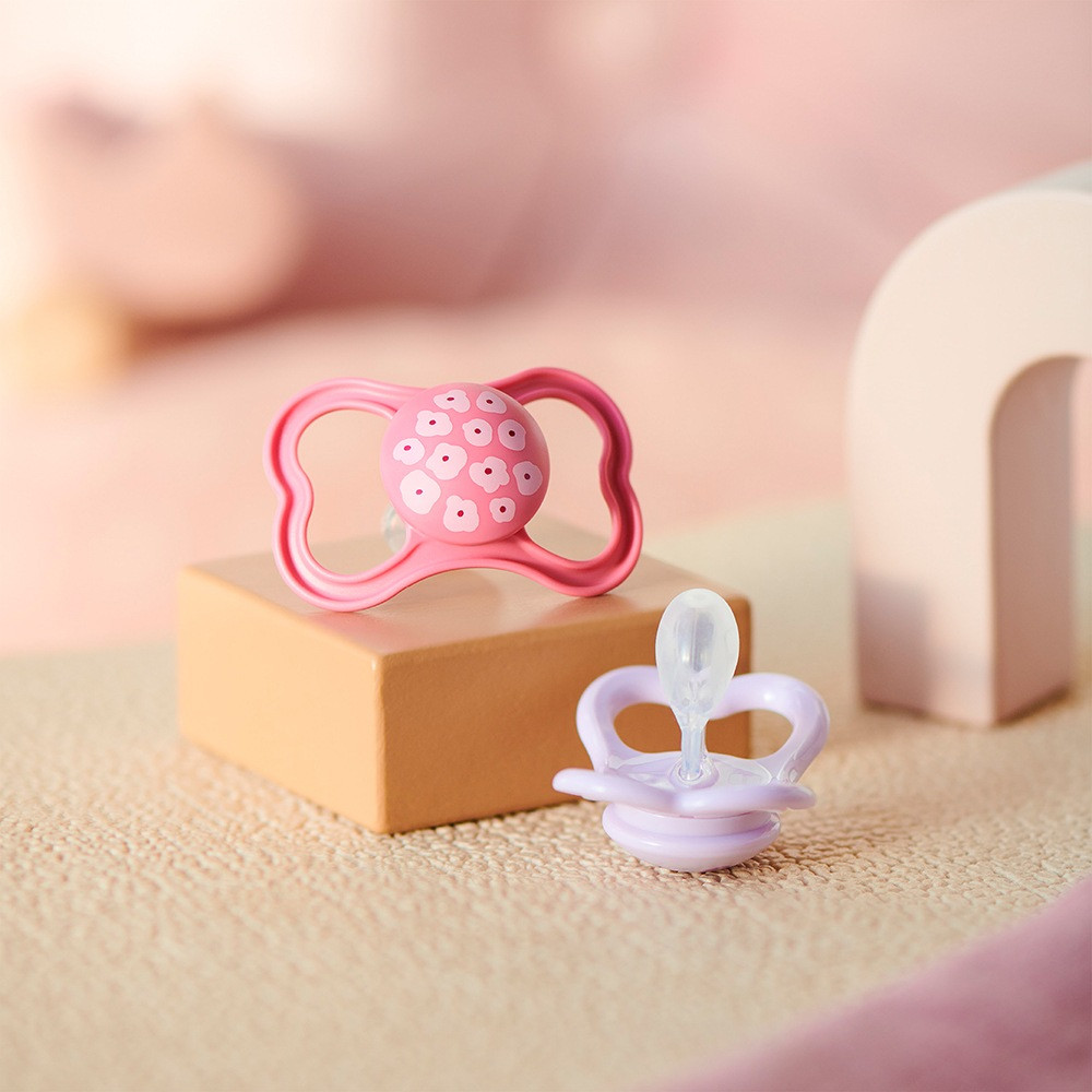 Az extra vékony és rugalmas szívóka lehetővé teszi a zárt szájtartást, hogy a babák természetes módon tudják becsukni a szájukat cumizás közben. Ez a fogaknak elegendő helyet hagy a normál növekedéshez. Az extra nagy szellőzőlyukaknak köszönhetően különösen kíméletes a babák érzékeny bőréhez.