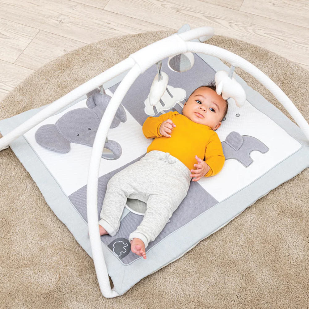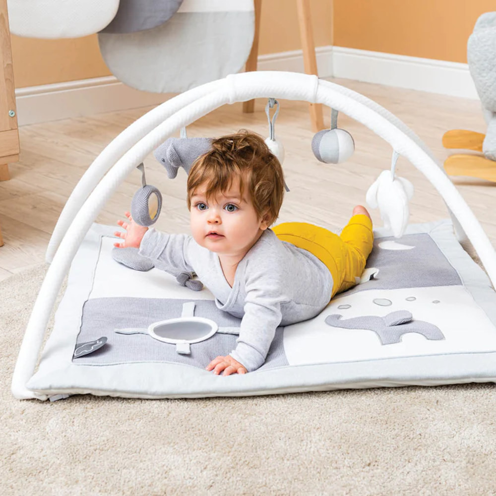 - Háton fekvő helyzetben a lelógó állatfigurák biztosítanak játéklehetőséget.