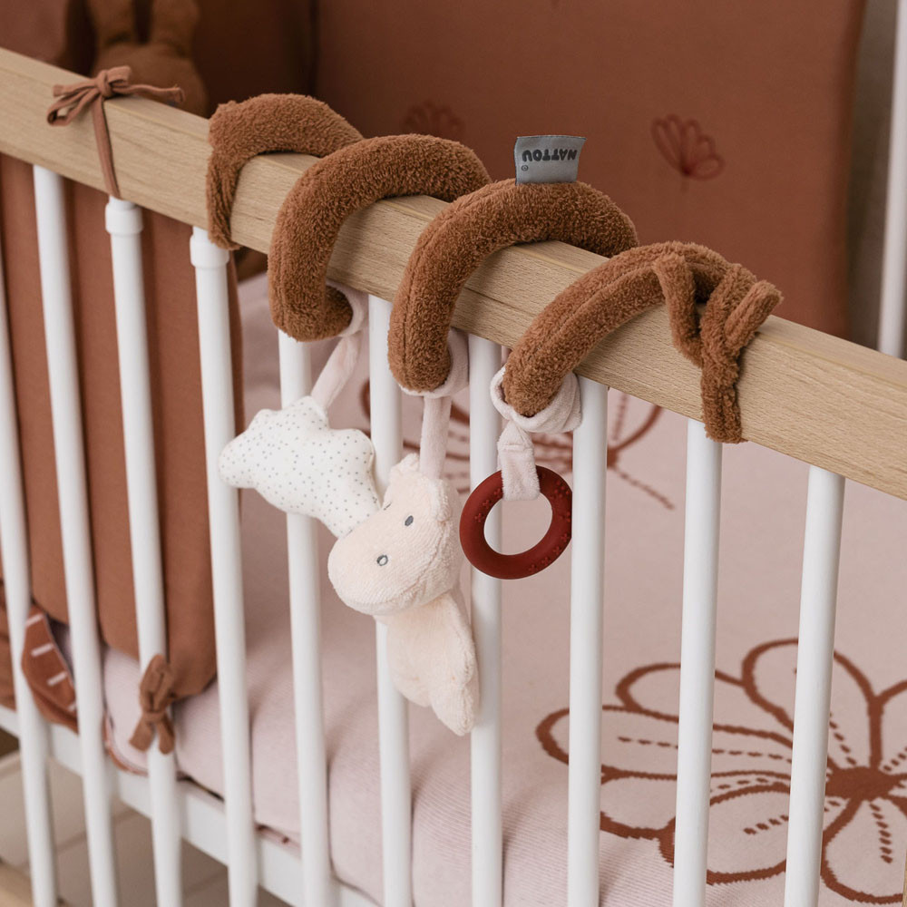 Ez a puha játékspirál szórakoztató tevékenységekkel ideális játszótárs babája számára. A különböző játékok csábításra hívják a babát, és több órányi játékidőt biztosítanak. Ez serkenti a baba fogási reflexét és hallásérzékelését. A játékspirál egyszerűen rögzíthető kiságyra, járókára vagy autósülésre. Szórakozás otthon és útközben!