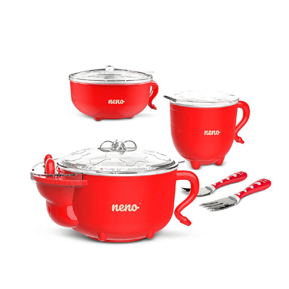 A Neno Mucca étkészlettel minden evés öröm lesz kisbabánk számára. Az étkészlethez tartozik egy tapadókorong, melynek segítségével biztonságosan tudjuk rögzíteni az asztalon, nem fog csúszkálni miközben gyermekünk eszik. Boci formája minden gyermek arcára mosolyt fog csalni, így még nagyobb élmény lesz minden étkezés számukra.