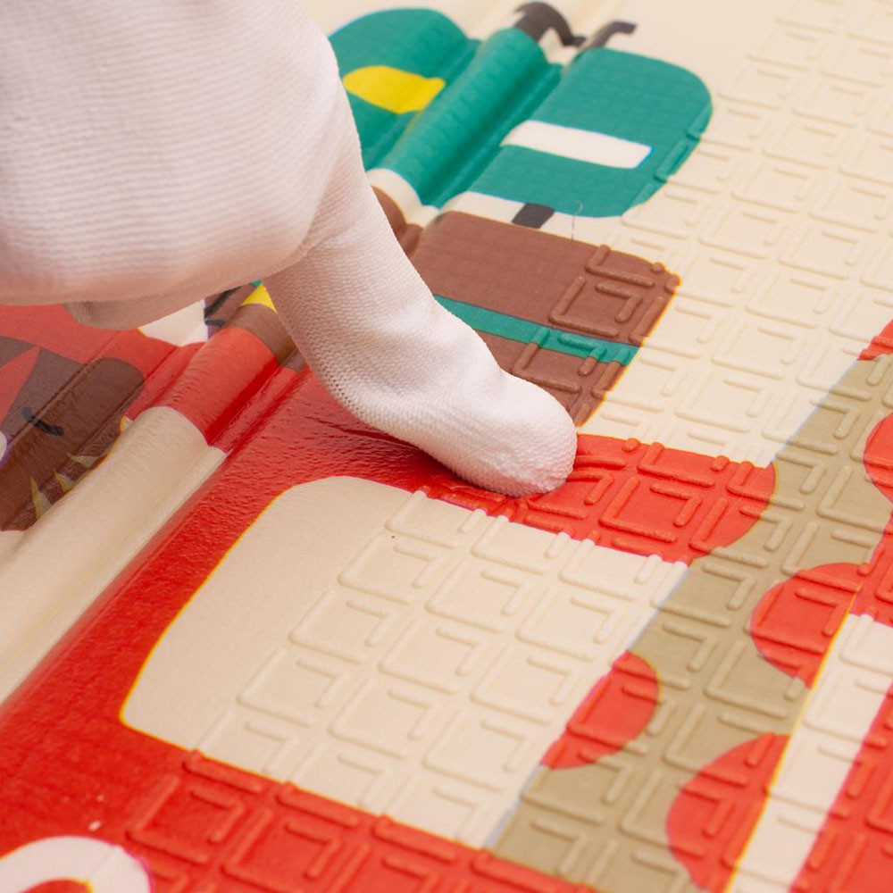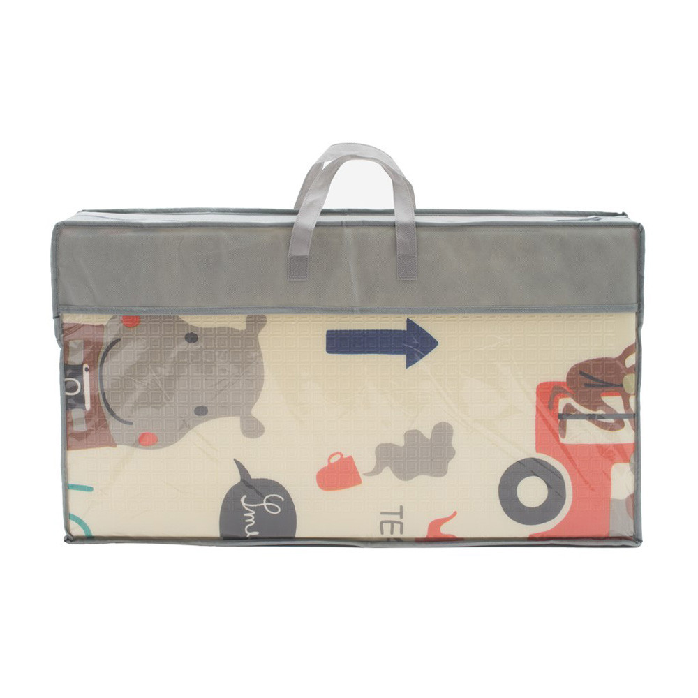 A PlayTo multifunkciós habszivacs játszószőnyeg sokoldalú felhasználást nyújt az egész családnak. Nélkülözhetetlen segédeszköz nem csak játszáskor, de könnyű torna mozdulatok elvégzésénél is hasznát veszi. Tökéletes gyermeke első ülés próbálkozásaikor és könnyen fejlesztheti vele gyermeke motorikus képességeit. Kétoldalú motívumnak köszönhetően használható otthoni tornázásra, matracként a sátorba, összecsukható nyugágyként a strandon, kertbe, vagy akár piknikezés közben is a szabadban. Előnyeit legfőképpen az óvodák, iskolák és gyermek központok értékelik majd, mint segédeszköz játszáskor és különféle tevékenységek elvégzésekor. Puha és kellemes tapintású anyagból készült. Kiváló hang és meleg szigetelést biztosít a hideg padlótól. Véd az atkáktól a szőnyegen vagy különféle sérülésektől, amelyeket szőnyegen csúszkálva szerezhet. Különlegesen tervezett csúszásgátló felülete megvédi gyermekét a nagyobb esésektől. Használatkor védi vele a padlót vagy szőnyeget a piszoktól vagy sérüléstől. Méretei 200x150 cm, de összecsukott formában 70x40x10 cm és könnyen becsomagolható a praktikus táskába, amely a termékhez tartozik.