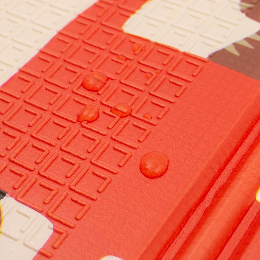 - poliéter habszivacsból (XPE hab) és laminált fóliából készült, aminek köszönhetően vízálló, nem szívja a nedvességet és könnyen tisztítható