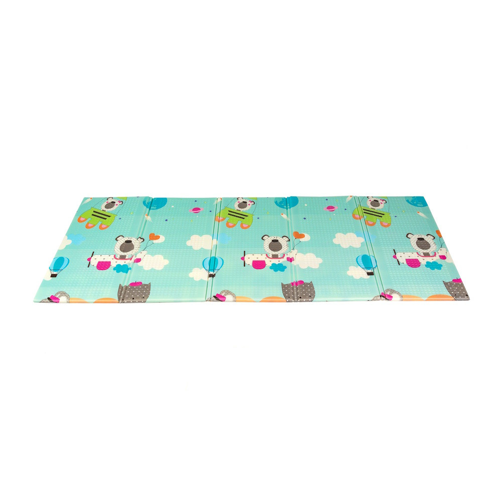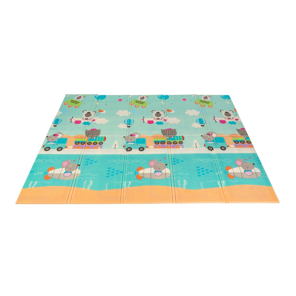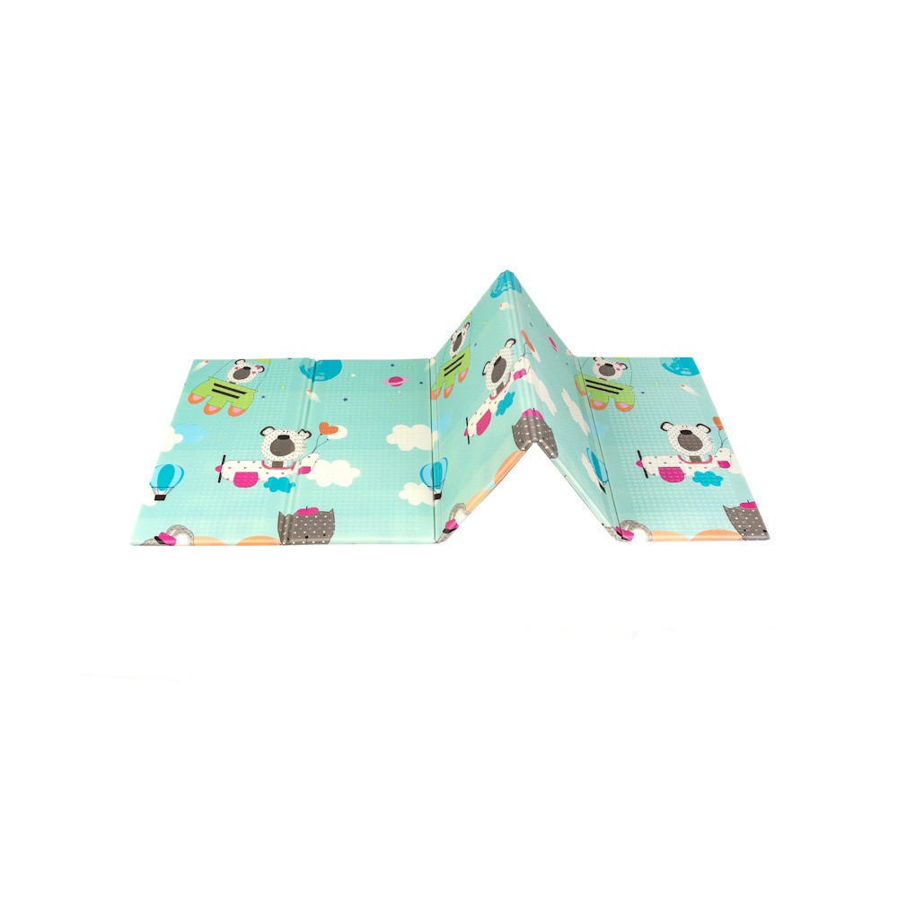 A kétoldalú összehajtható szőnyeg színes és változatos mintákat és textúrákat kínál, amelyek segítik fejleszteni a babák látását és tapintását. Tele van állatok képeivel, amelyek támogatják a legfiatalabb felhasználók intellektuális és motoros fejlődését.