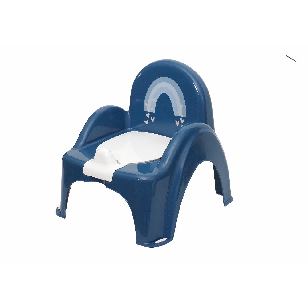Magas háttámlával, kivehető betéttel és lehajtható fedéllel rendelkező, csúszásgátlós zenélő bili.