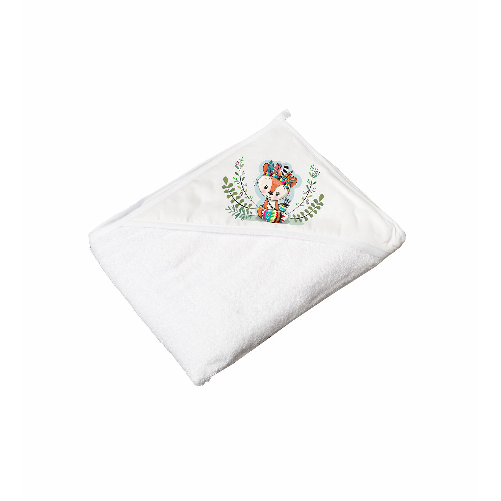 Tega kapucnis törölköző 80x80 Wild and Free Kisróka fehér