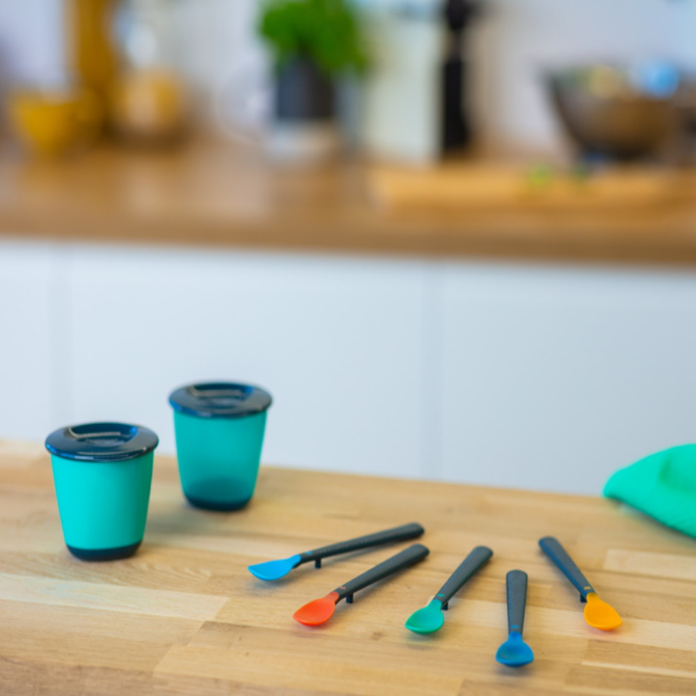 A higiéniai szempontokat figyelembe véve a kanál nyele megemelt kialakítású, így a kanál feje és az étel nem ér hozzá a felületekhez.