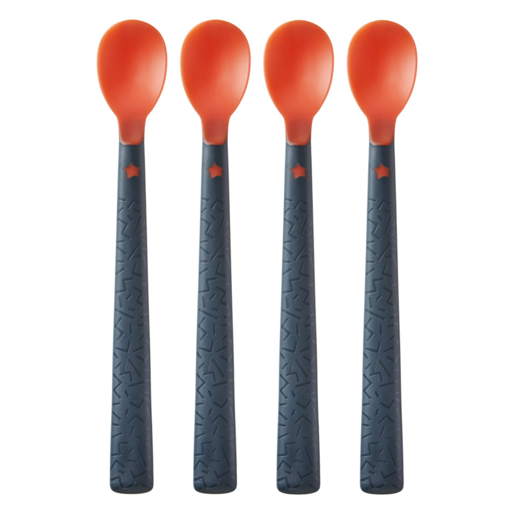 A hosszú nyél segítségével könnyen elérjük a bébiételes üveg vagy bármely edény alját.Csúszásgátlóval ellátott kialakításának köszönhetően nem csúszik bele a tálkába.