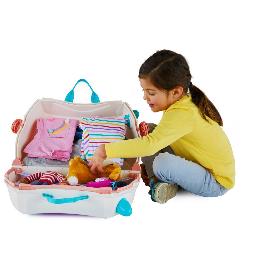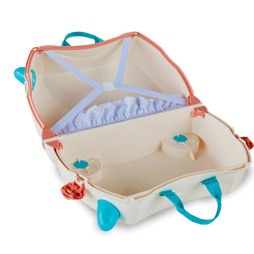 A világ első lábbal hajtható és ülőkeként is használható gyermekbőröndjével! Díjnyertes angol dizájn. A gyermek húzhatja maga után, vagy rá is ülhet, és ha elfáradt, húzhatjuk is rajta.