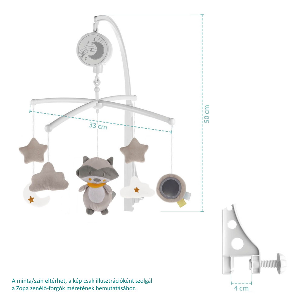 A babák könnyebb elalvása érdekében, valamint, hogy az édesanyák számára az altatás a béke és a nyugalom pillanatai legyenek, a gyermekszobából nem hiányozhat a gyerekágyra szerelhető forgó. A Zopa zenélő-forgó nem csak a babaágy szép díszítő eleme, hanem egyúttal a baba megszületéstől kezdődően játék és elalvási segédeszköz is.