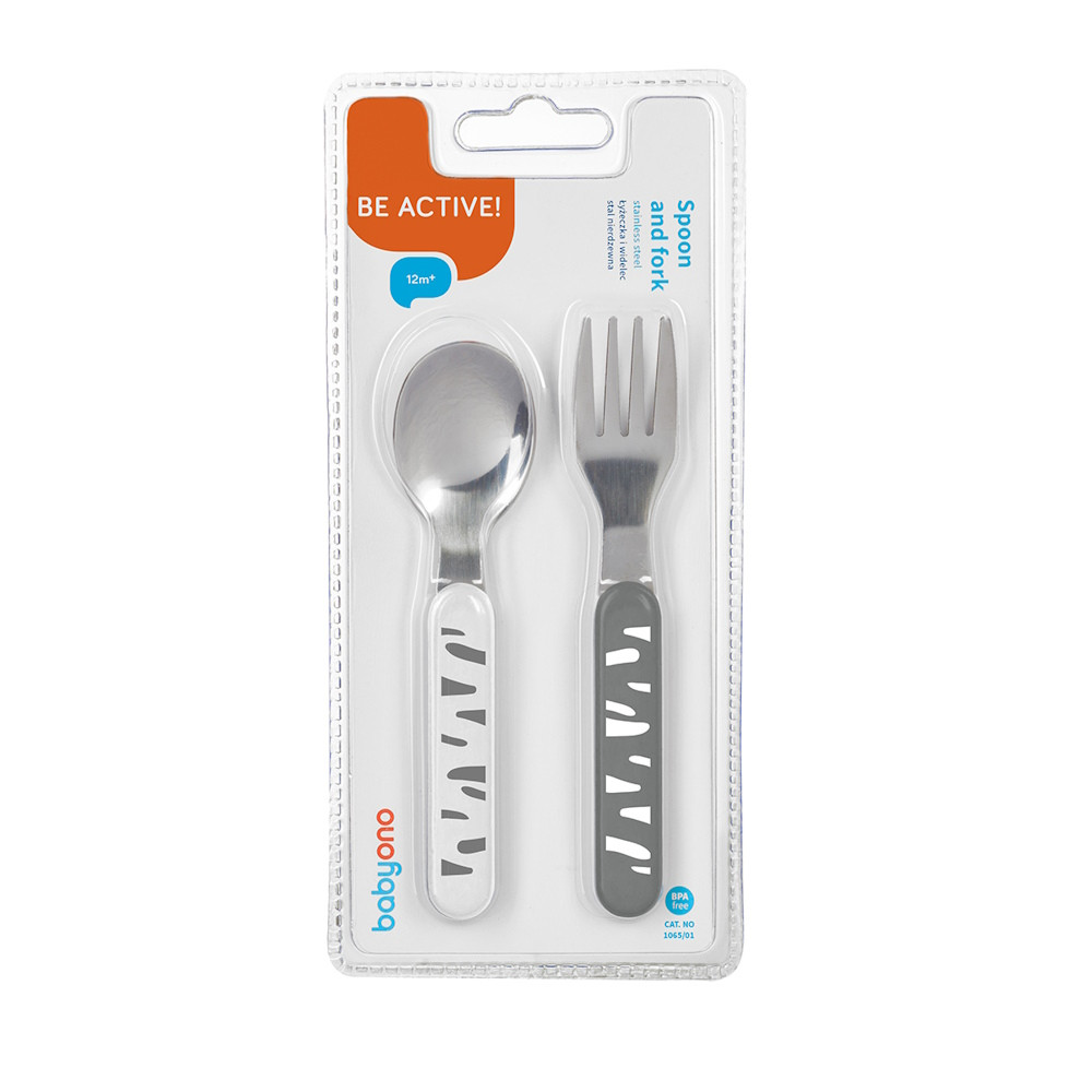 A nyél barátságos mintázata vonzza a gyermek tekintetét, és arra ösztönzi, hogy megragadja. Ezáltal lelkesebben fedezi fel az új ízeket! A visszafogott színek tökéletessé teszik a készletet lányok és fiúk számára egyaránt.