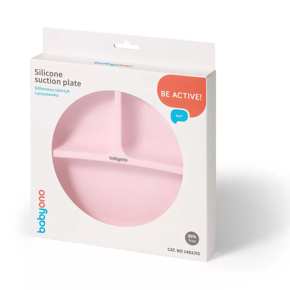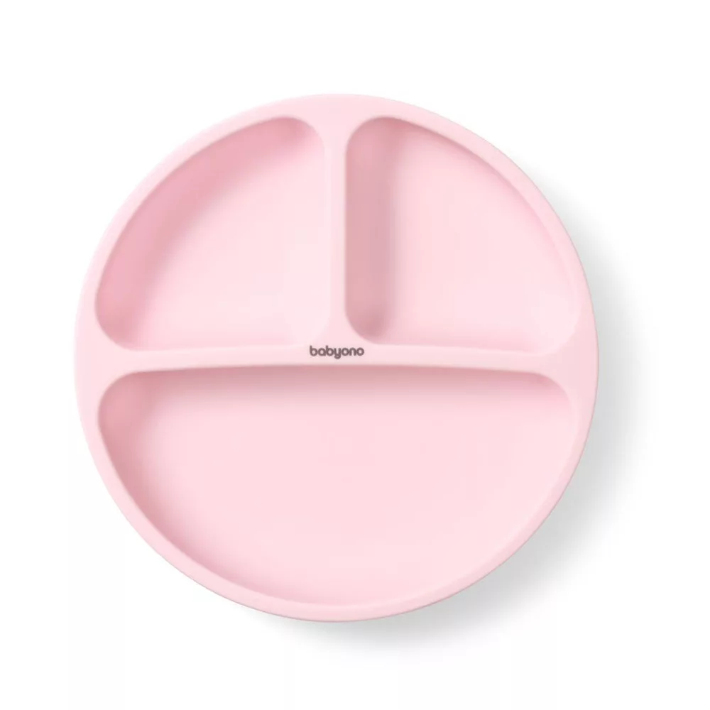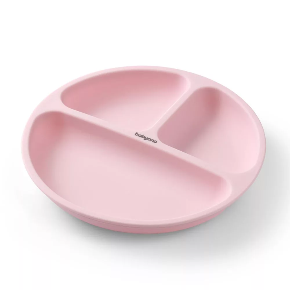 BabyOno tányér szilikon tapadó aljú háromrekeszes rózsaszín 1482/02