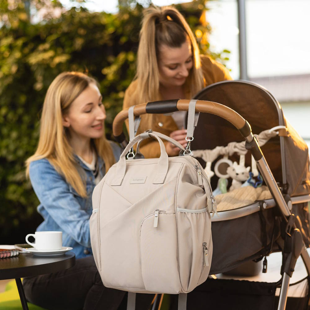 Használható pelenkázó-hátizsák hibridként a babakocsihoz. Nyugodtan hordd a hátadon vagy tartsd a kezedben.