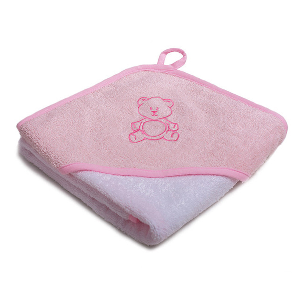 Stella fürdőlepedő hímzett 80x80cm rózsaszín-fehér maci
