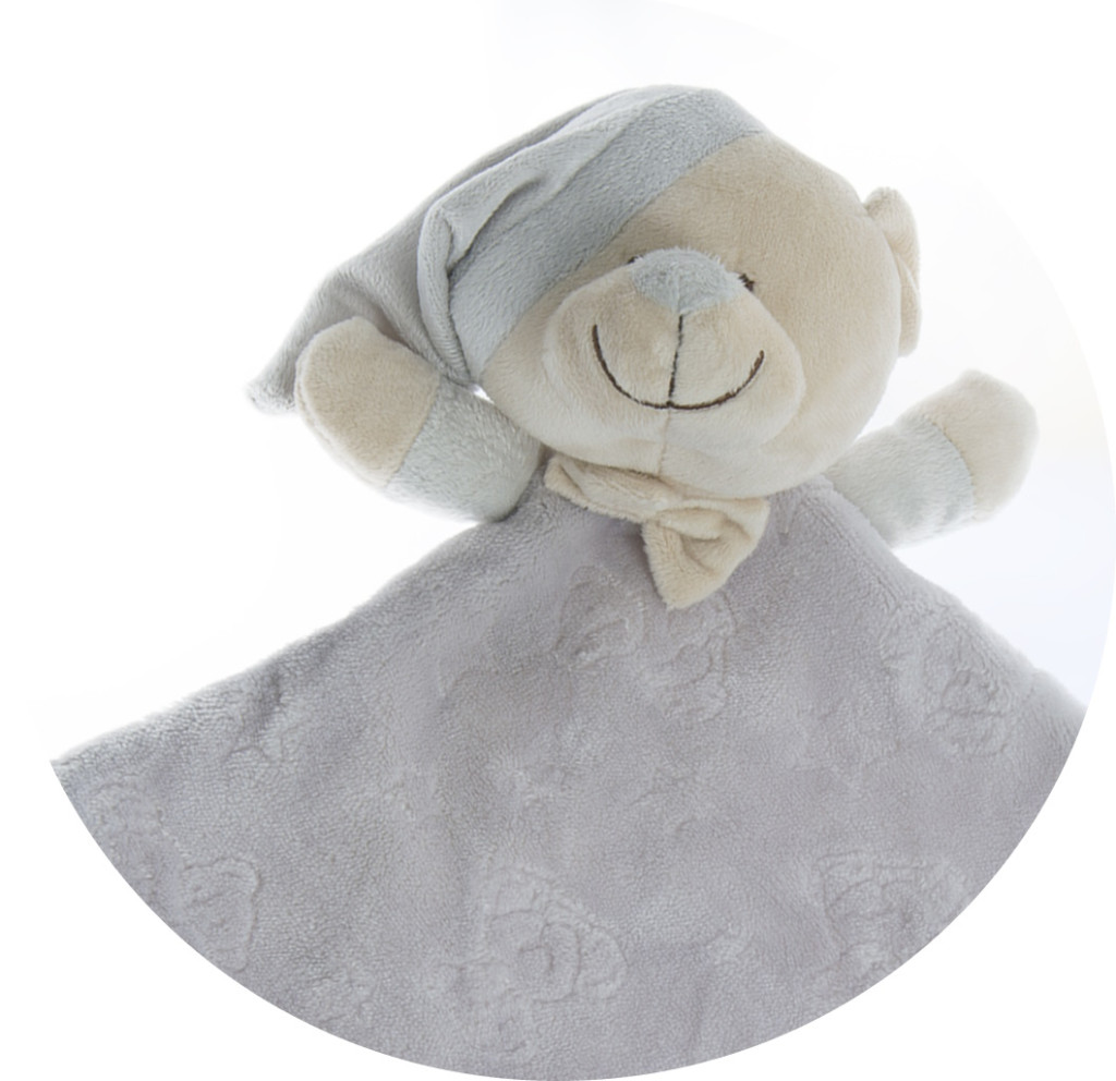 Gamberritos szundikendő plüss maci és csillagmintás hálósapkás maci szürke 10877