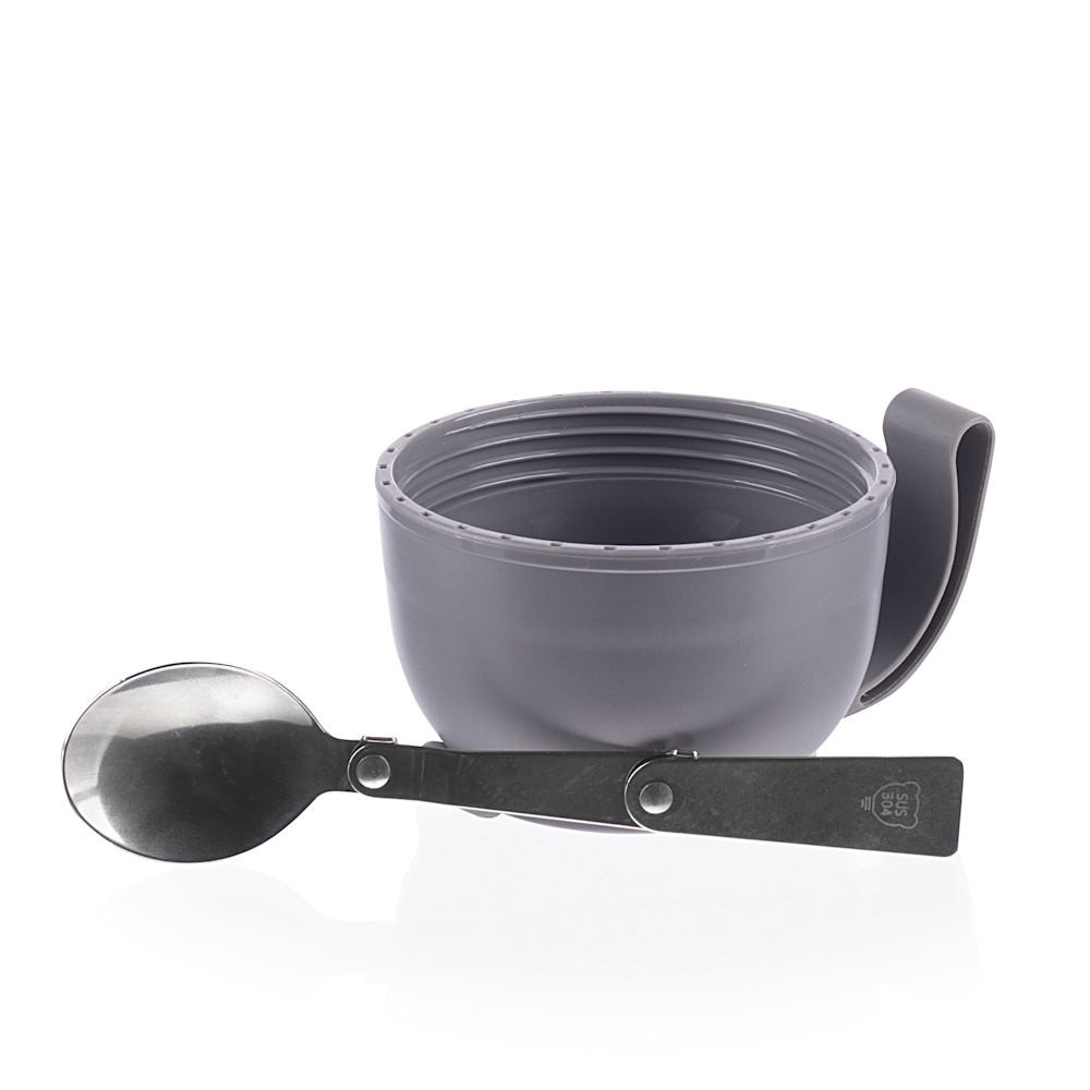 Tartalmaz egy okos összecsukható kanalat, amely tökéletesen illeszkedik a kupakba, így gyermeked bárhol megkóstolhatja a meleg pépet vagy levest. A termosz fedele csészeként vagy tálként használható. A felső kupak biztonsági szeleppel van ellátva, amely felszabadítja a felesleges levegőt, mely nyomást képez. A sűrített levegő kibocsátásának köszönhetően a tartály könnyen kinyitható, és elkerülhető a gőzzel való forrázás.