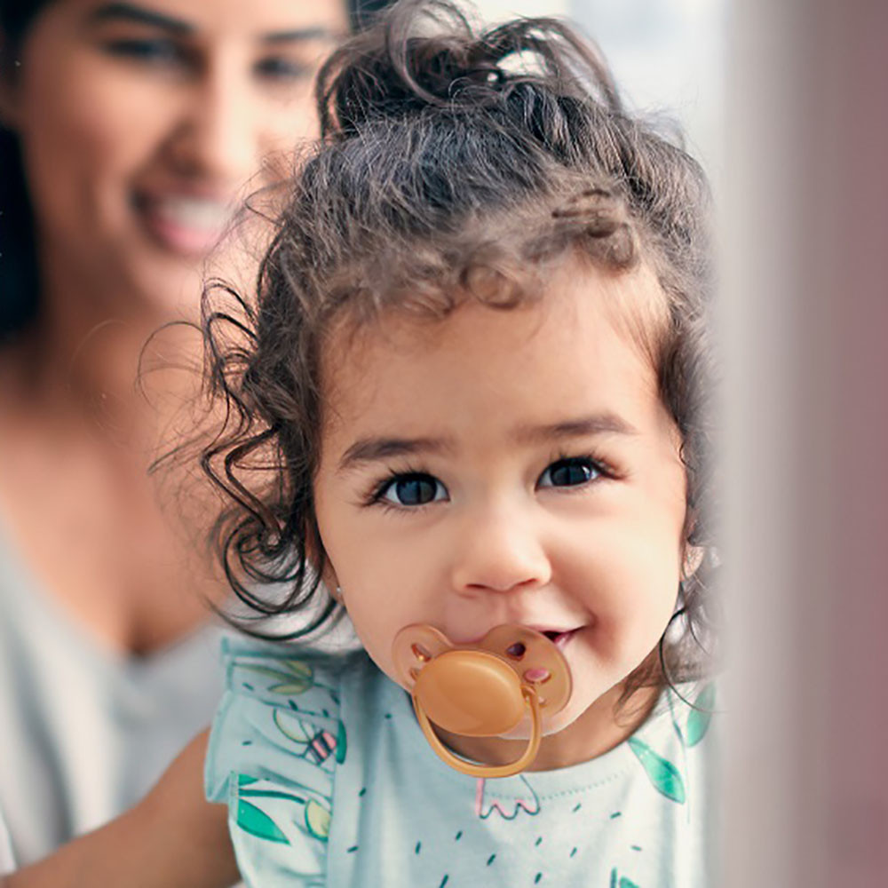 A lekerekített cumipajzsunk minimalizálja a nyomást, így gyengéd a gyermeke arcához, és kényelmes megnyugtatást biztosít.