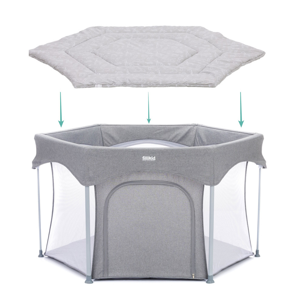 Fillikid betét hatszögletű utazójárókába 124cm átmérőjű szürke Safari 1121-77